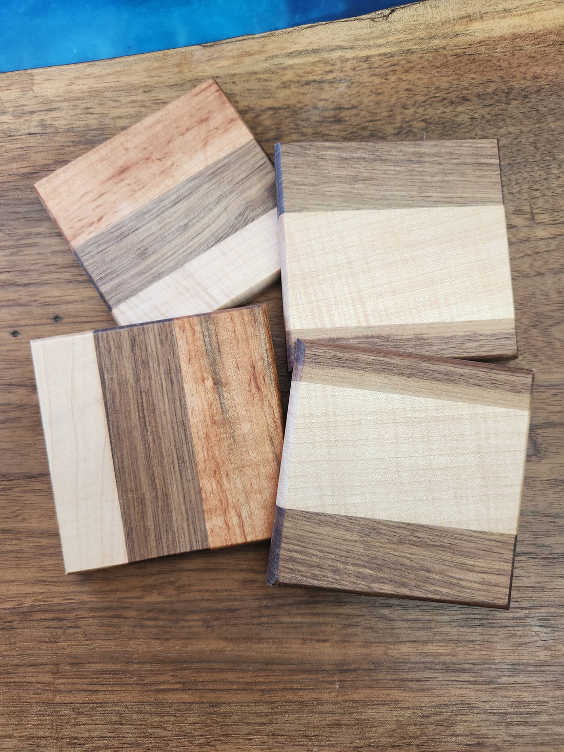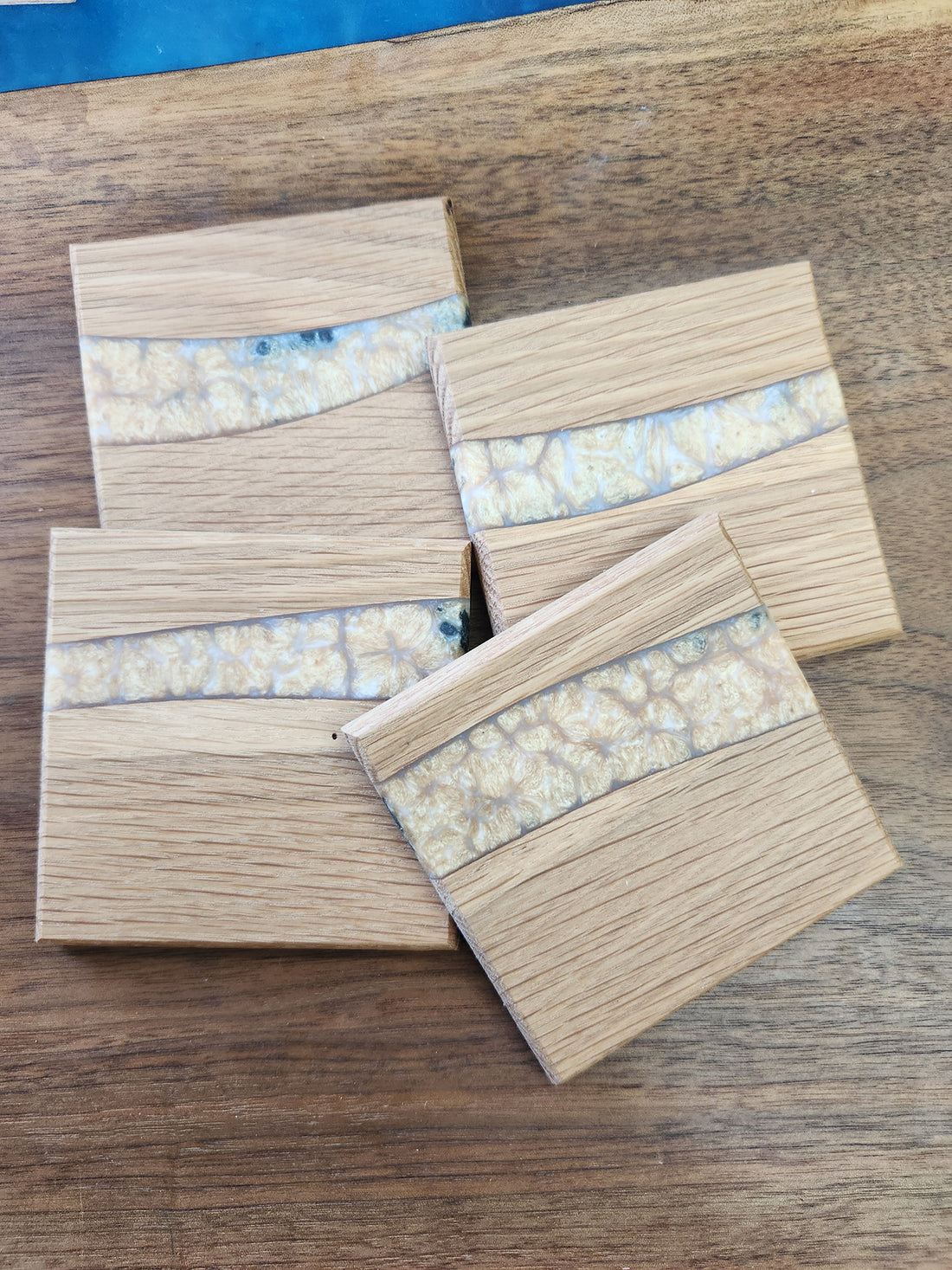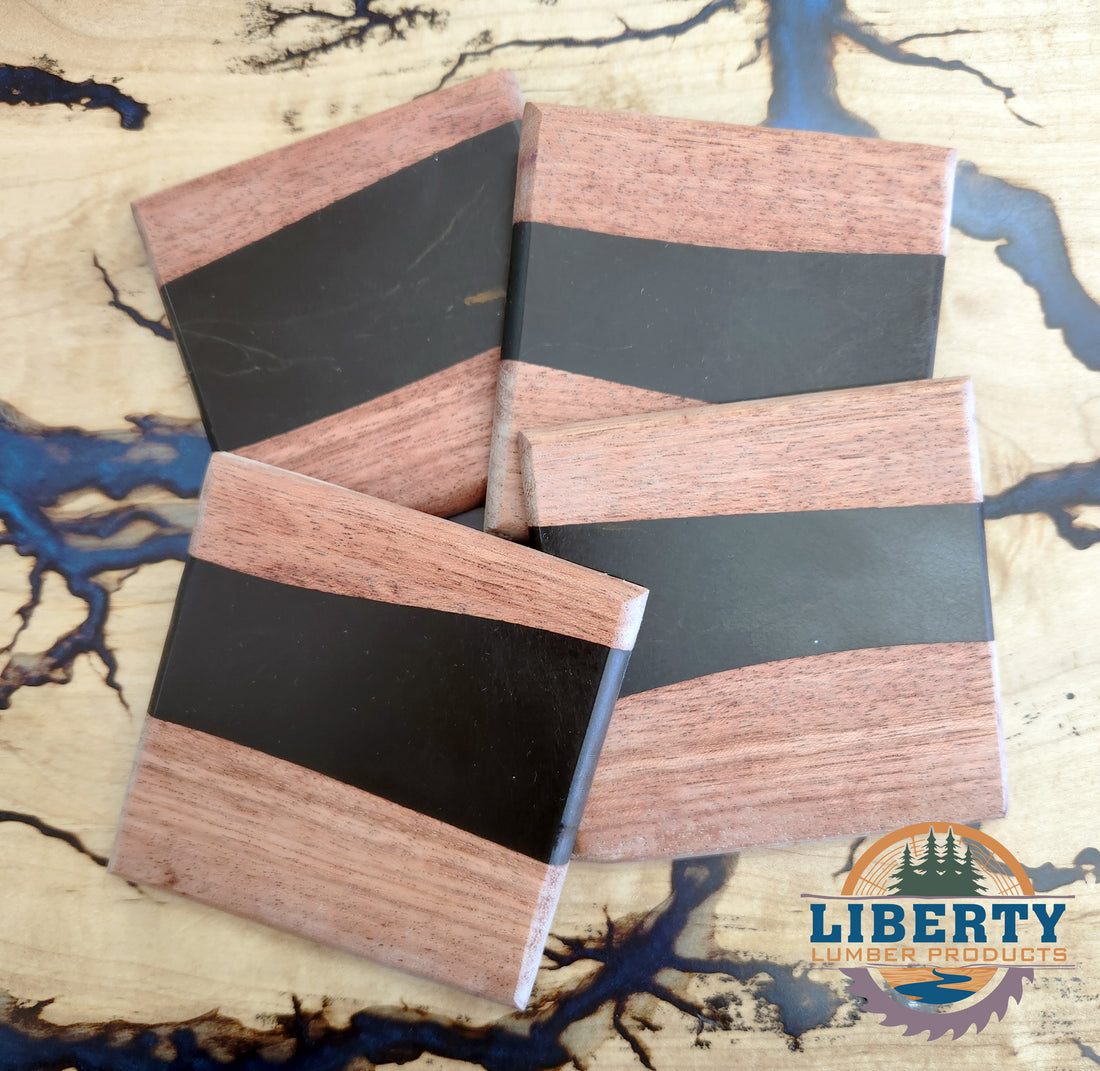 4" x 4" glow in the dark epoxy and wood coaster set.