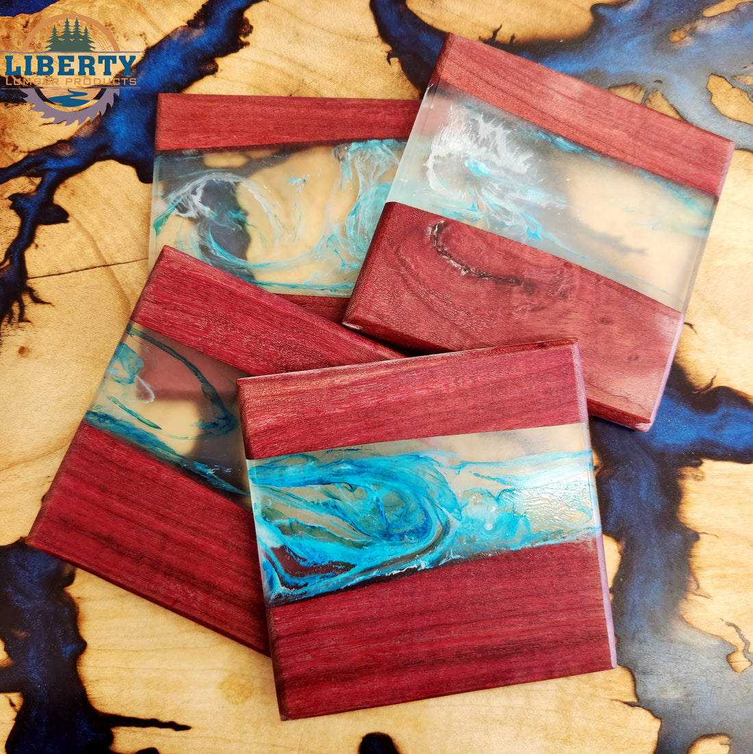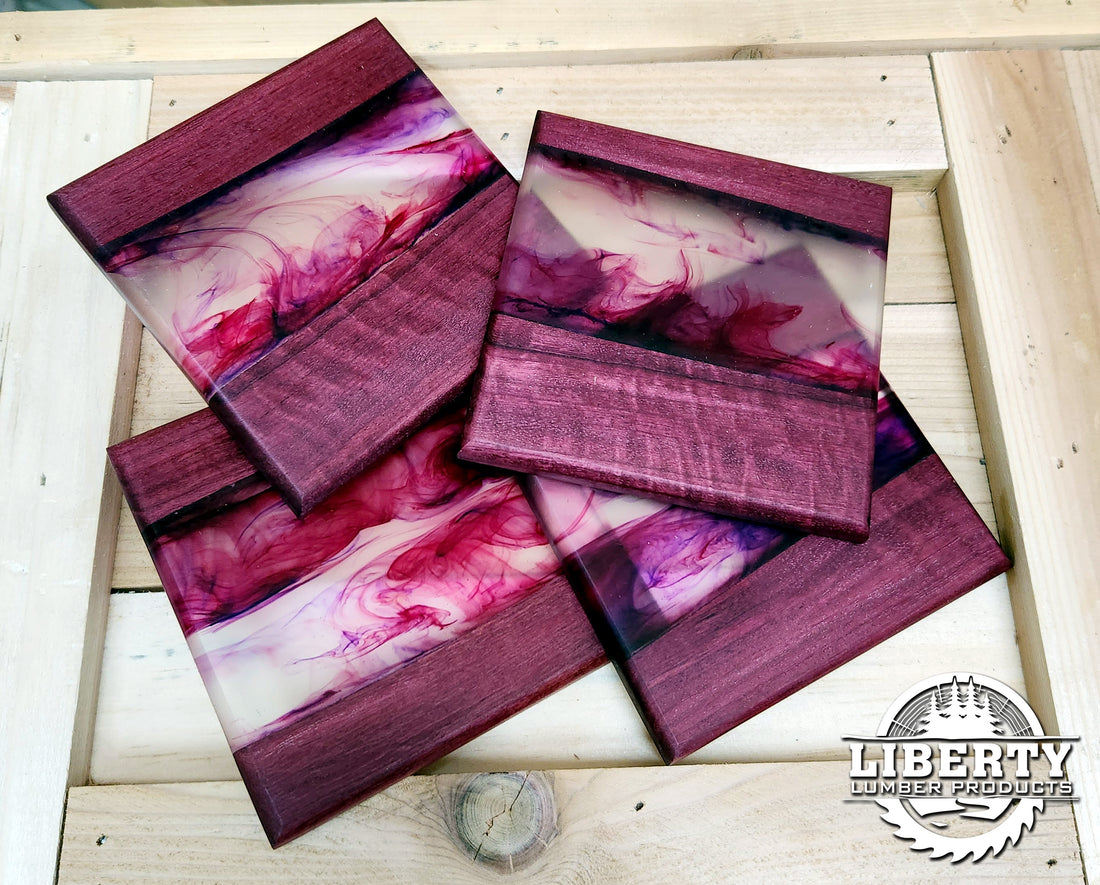 Purple Heart and Clear Epoxy with a fusion of red and purple dyes. Each coaster...
