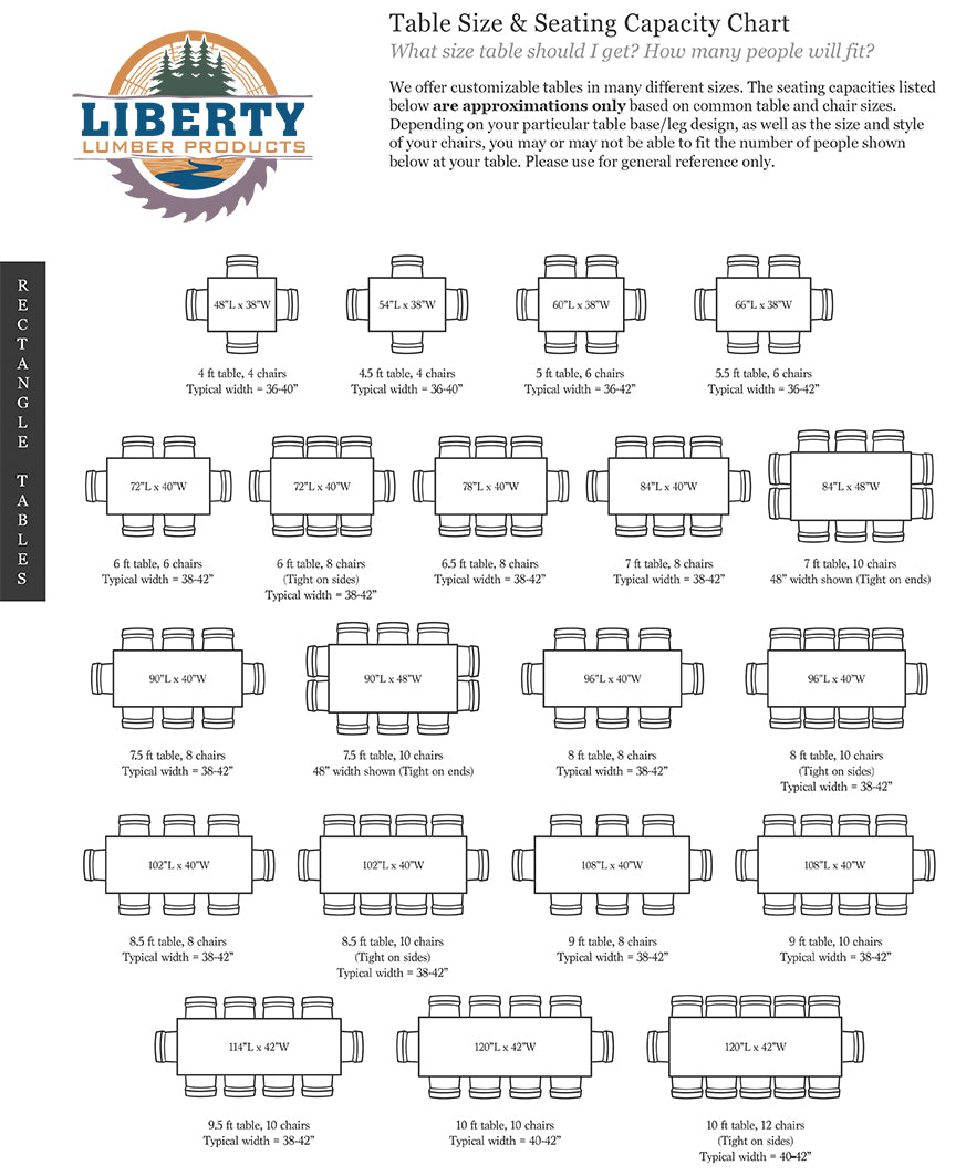 These tables are built to order and have a 3-4 week lead time. Please see size chart for seating capacity. If you are looking for a custom size, please contact us.