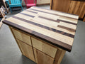 This handmade vanity is made using kiln-dried maple. The top is butcher block style black walnut and maple.