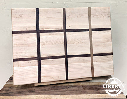 Introducing our meticulously crafted maple and walnut cutting board, adorned with a striking square grid pattern, designed to elevate your culinary experience. Measuring 20.75" x 15" x 1.25", this board offers ample space for all your cutting and chopping needs while adding a touch of sophistication to your kitchen decor. The seamless fusion of maple and walnut wood not only ensures durability but also exudes timeless elegance. Whether you're preparing ingredients or serving charcuterie, our cutting board is the epitome of style and functionality. Treat yourself to the artistry of artisanal craftsmanship with every slice on this exquisite piece.
