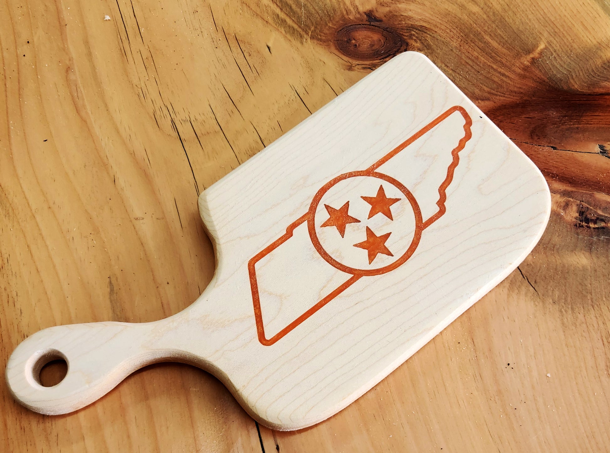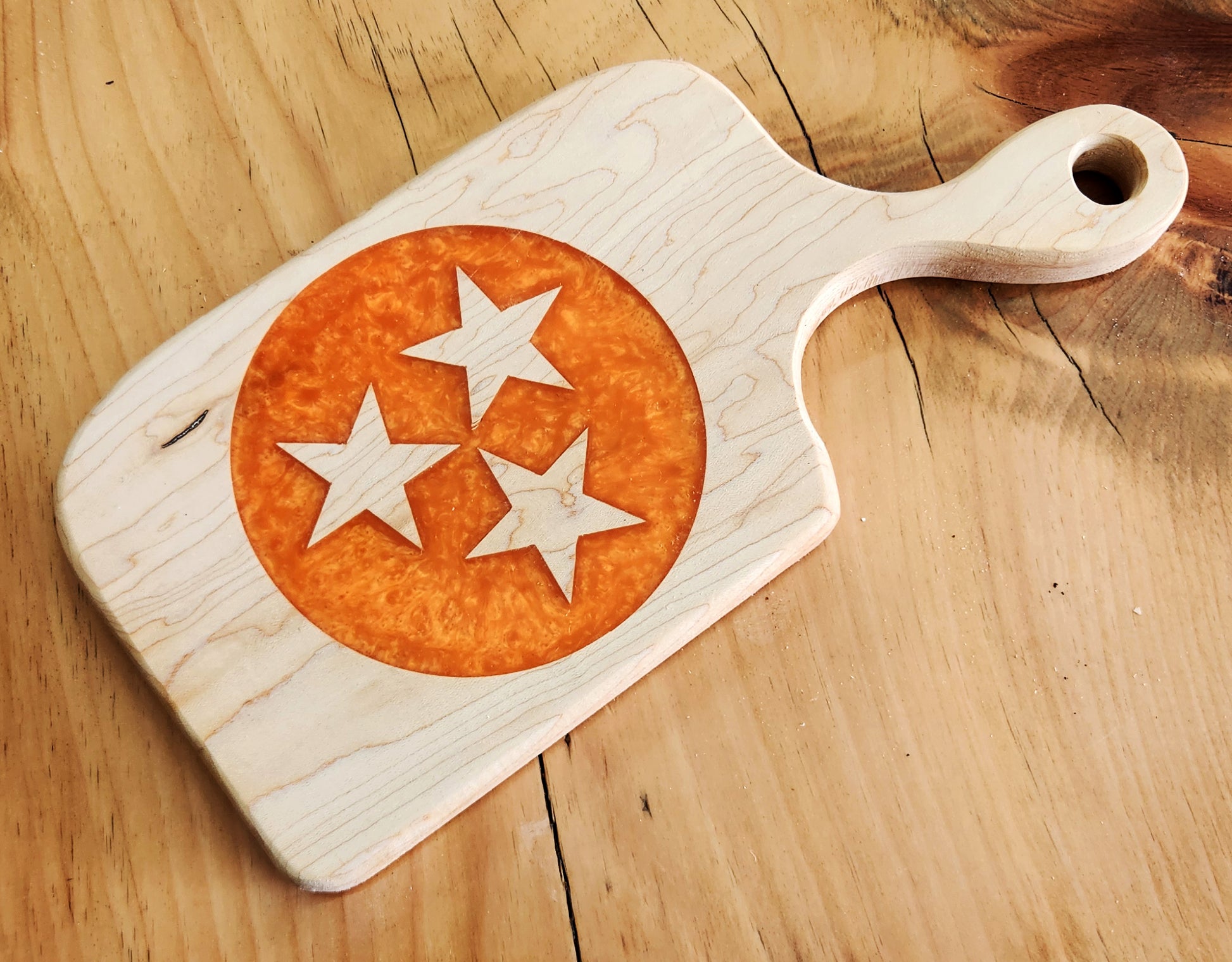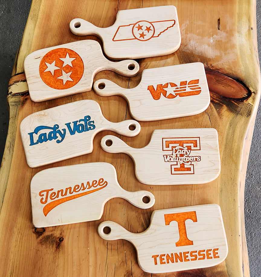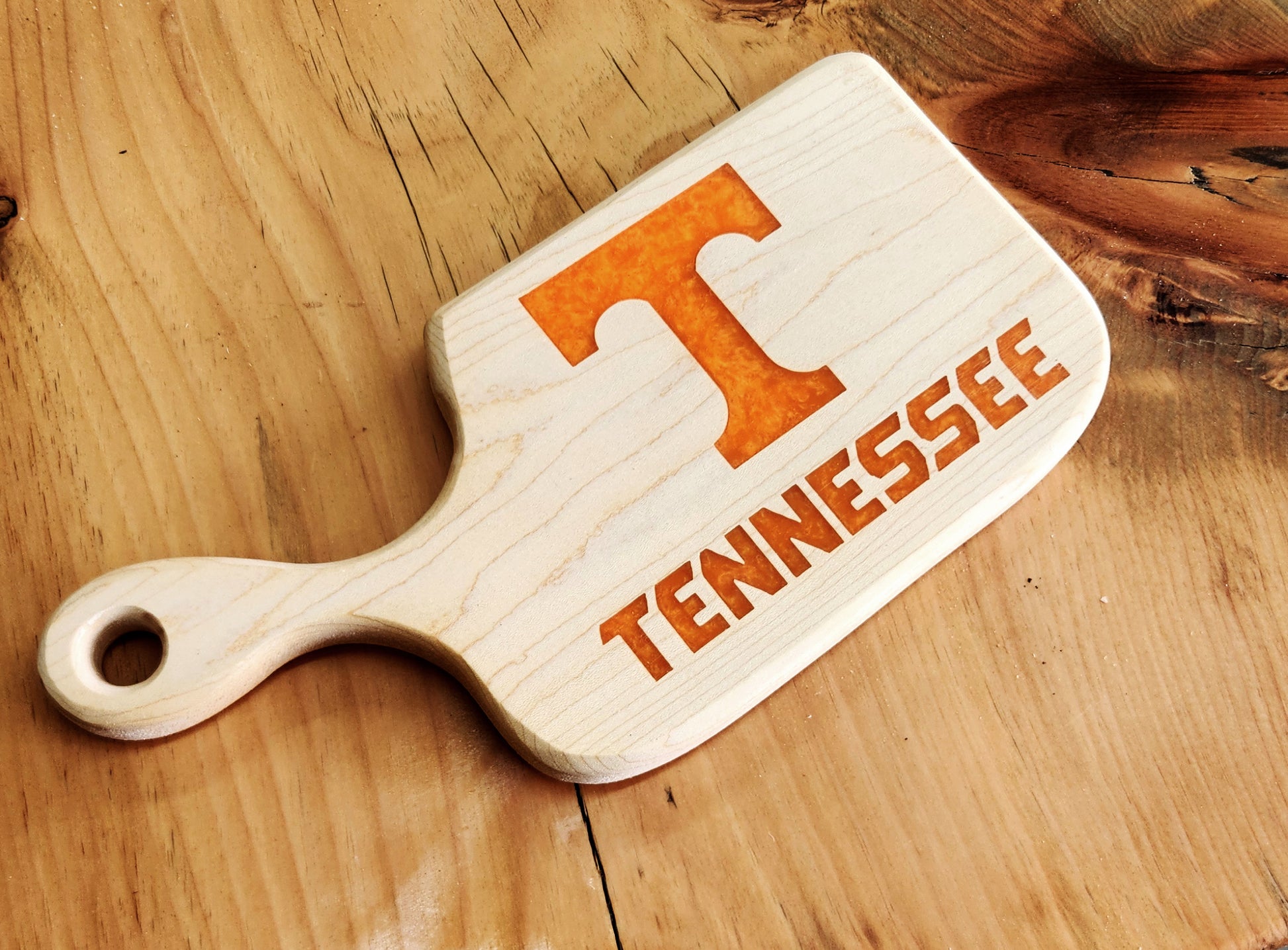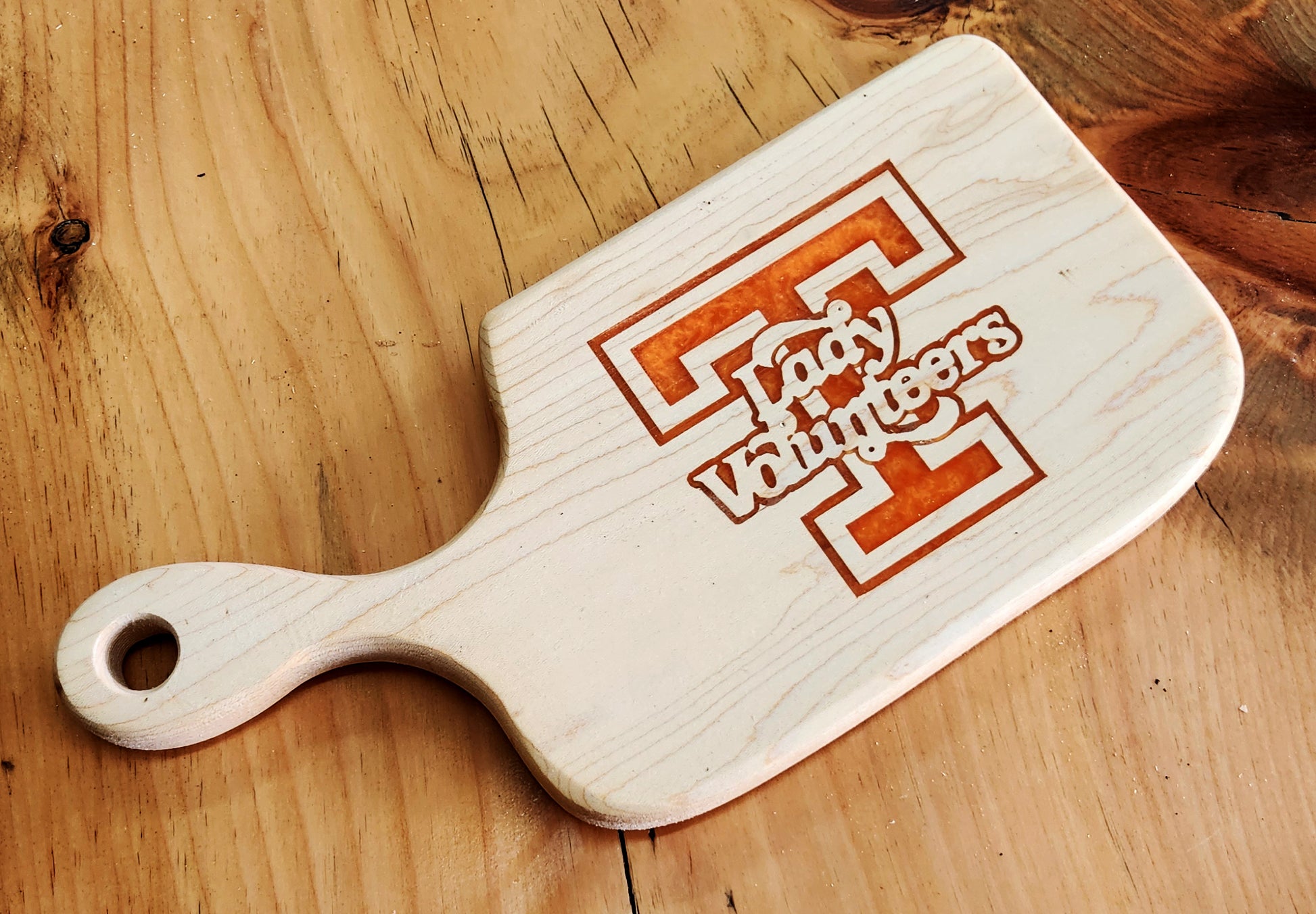 Show your Volunteer pride with these handcrafted maple charcuterie boards featuring officially licensed University of Tennessee logos! Each board is carefully made from premium maple hardwood and custom engraved with your choice of iconic UT designs—including the Power T, Lady Vols, state emblem, and more. We fill the engraved logos with vibrant epoxy for a bold, lasting finish that stands out on any table or tailgate.