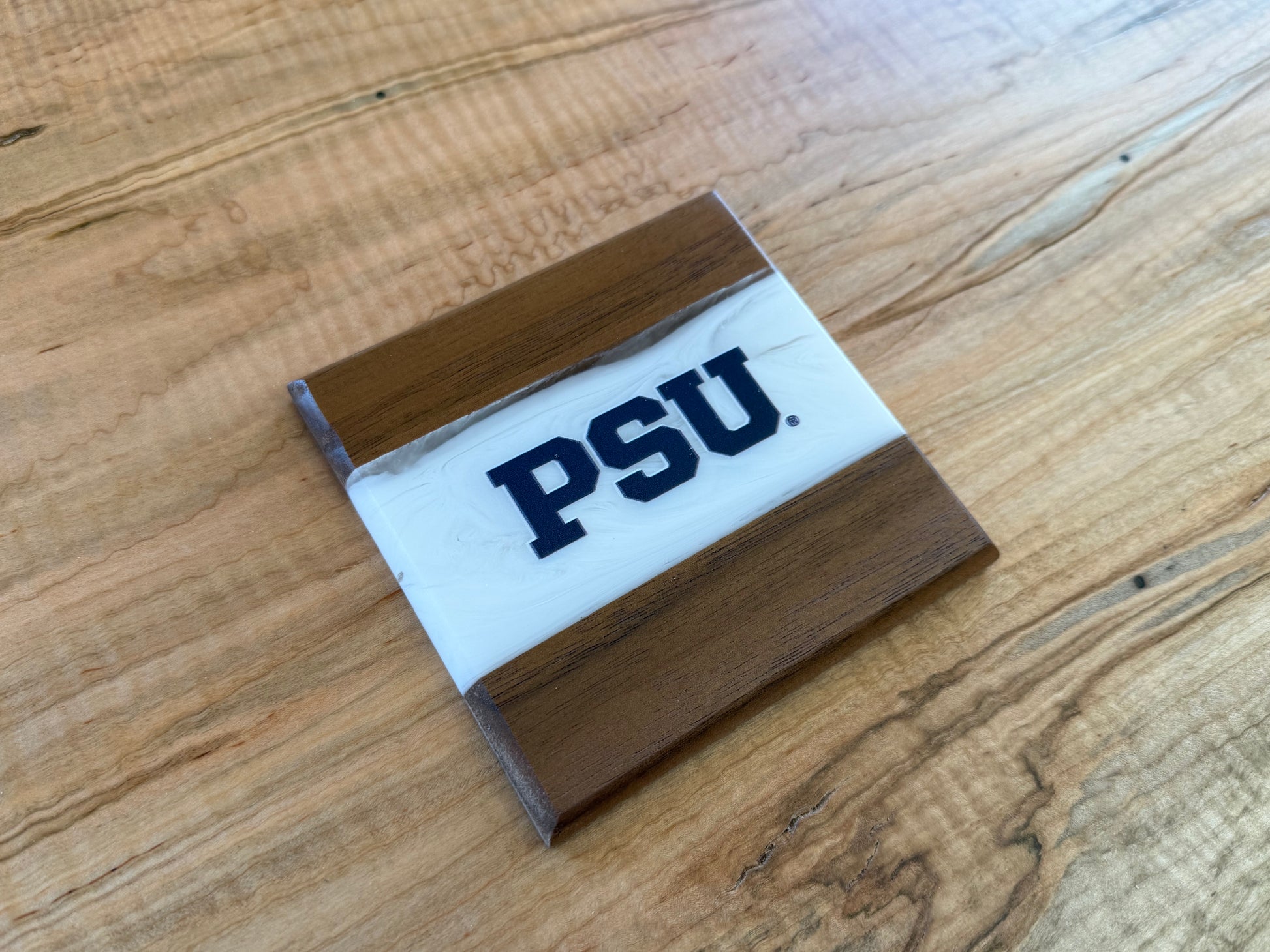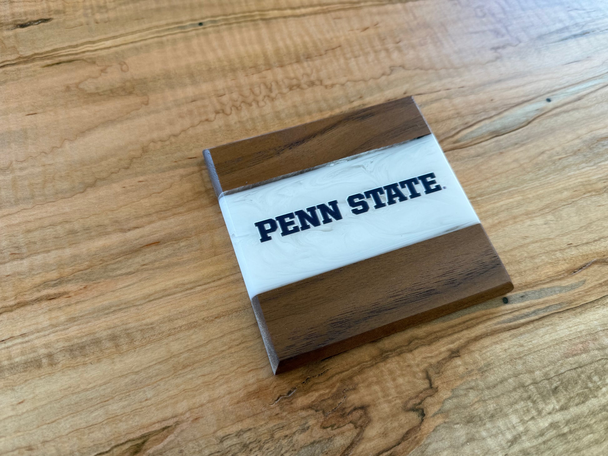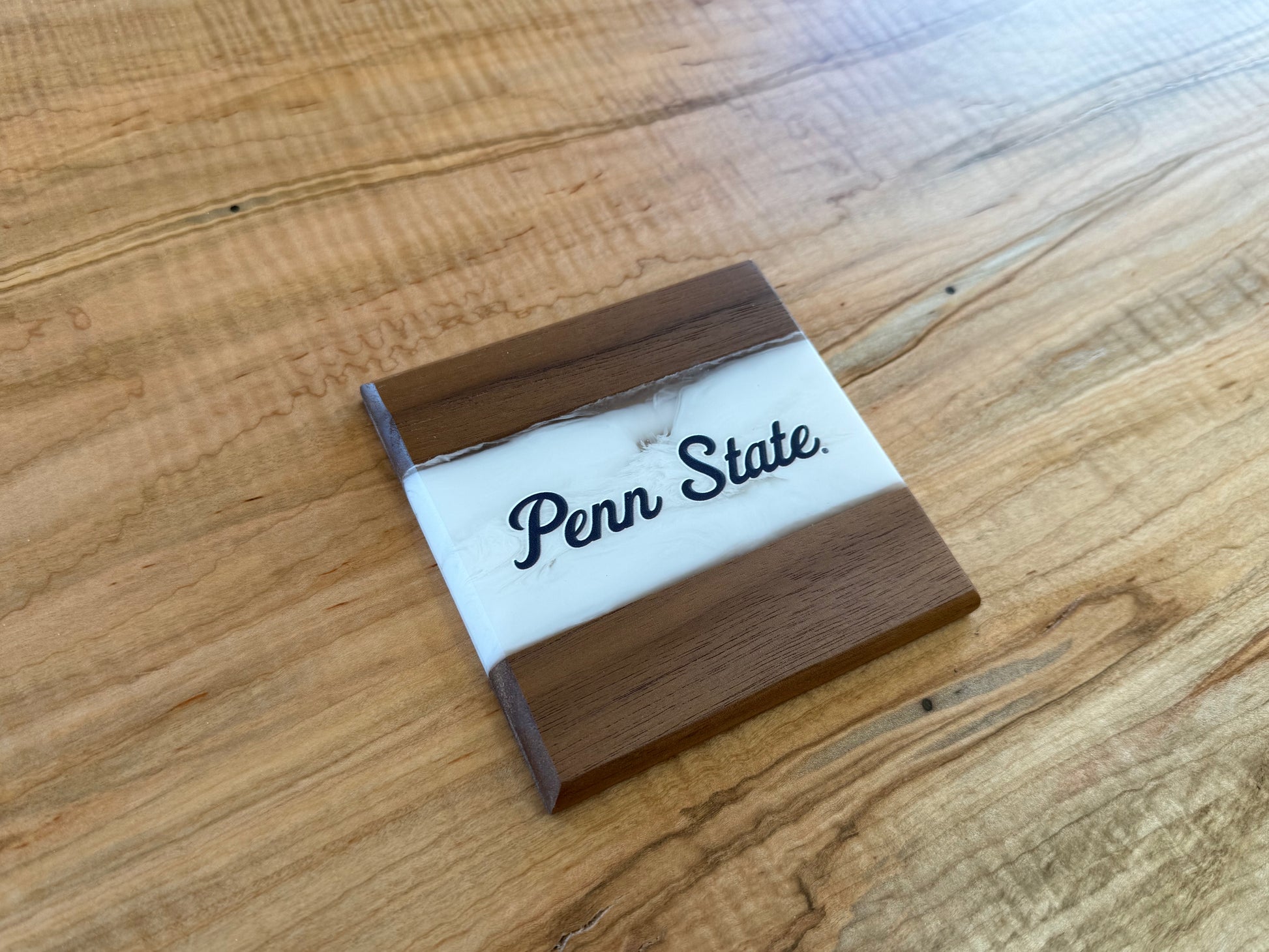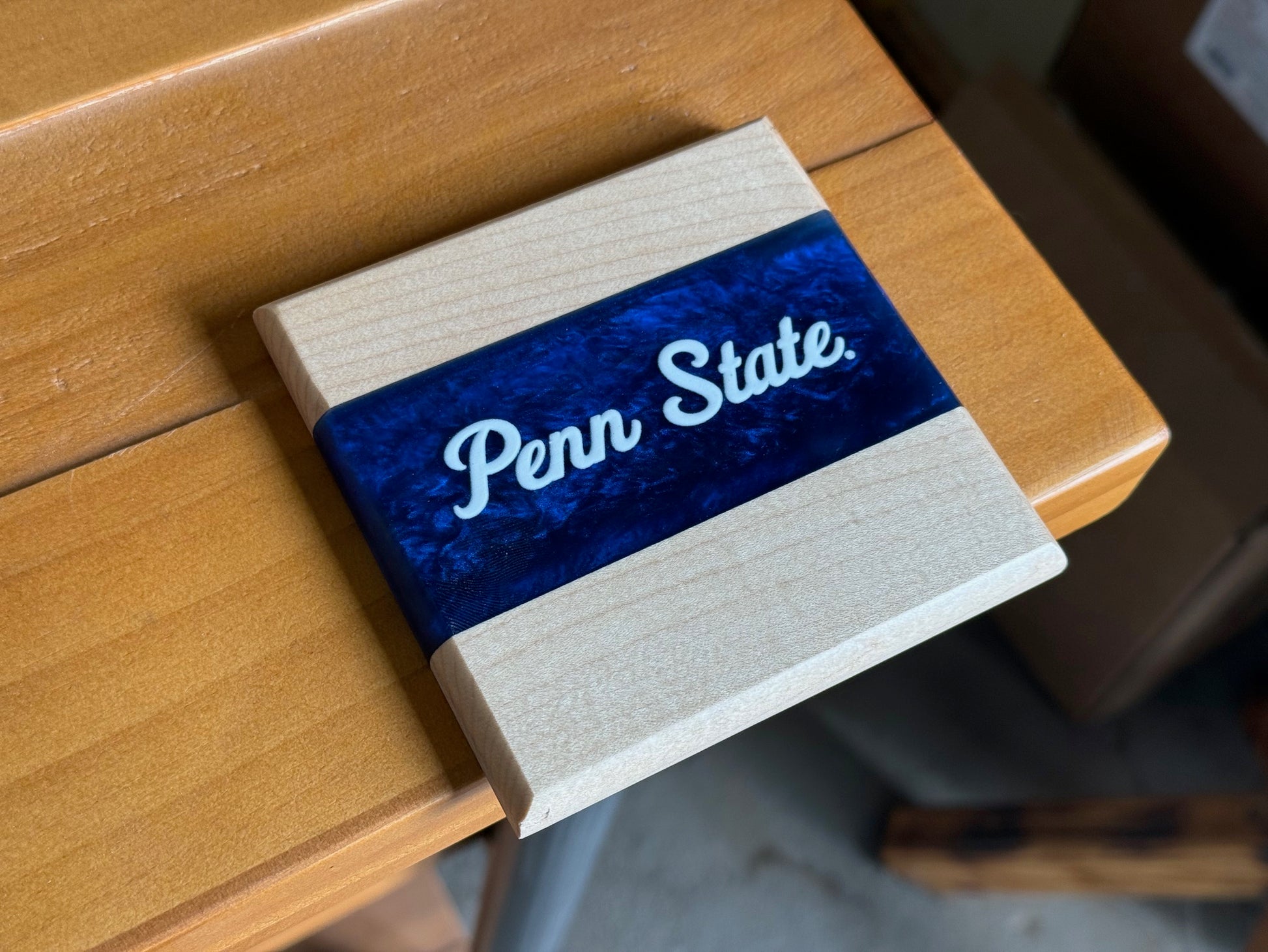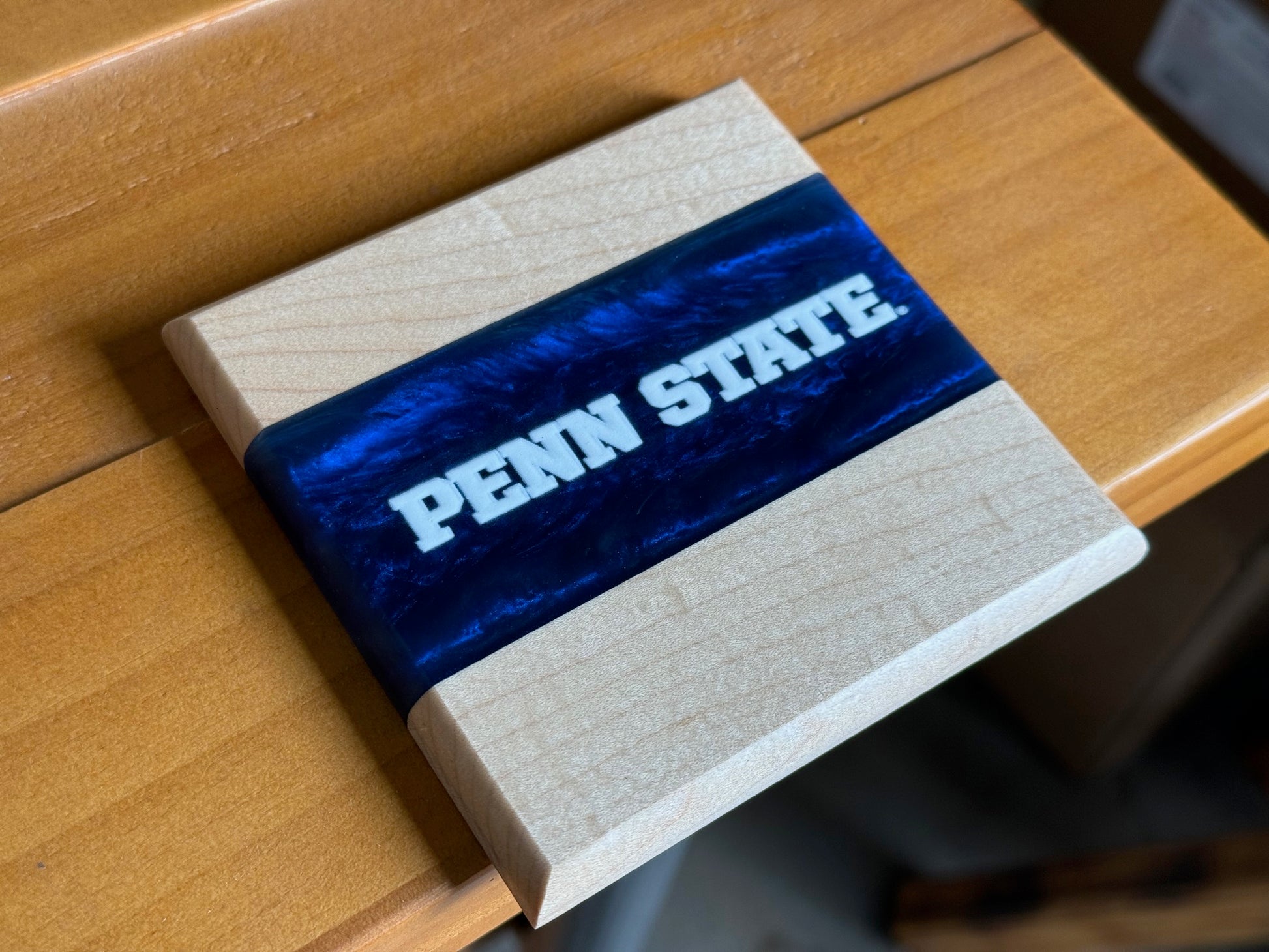 Maple Coasters with Blue Epoxy River & White Penn State Logo (1 pc)