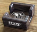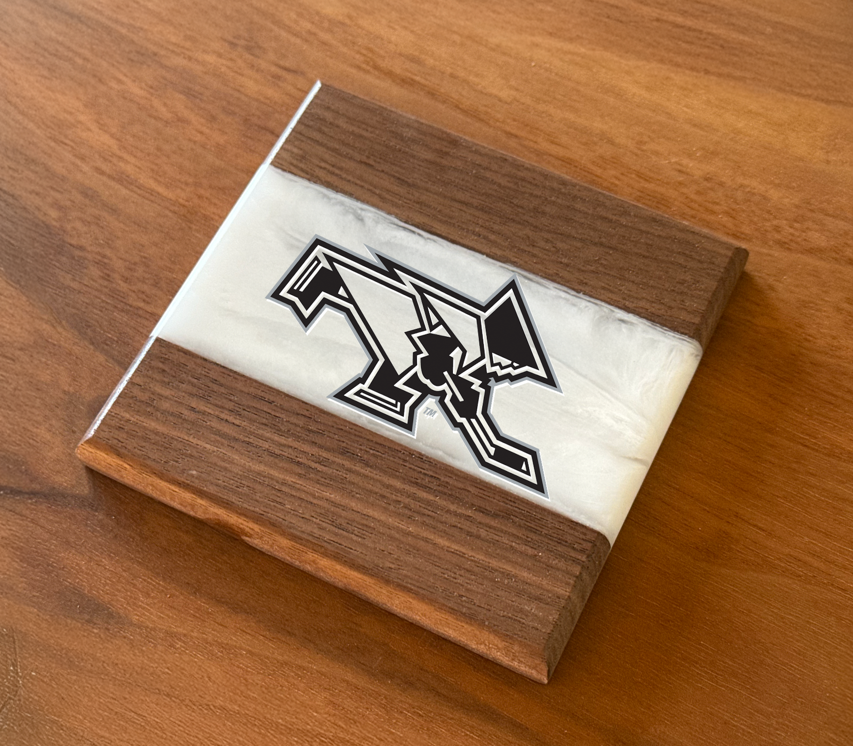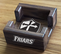 Choose 4 PC designs and wood finishes to create a customized set perfect for fans and alumni. The caddy keeps your coasters organized on coffee tables, home bars, or tailgate setups.