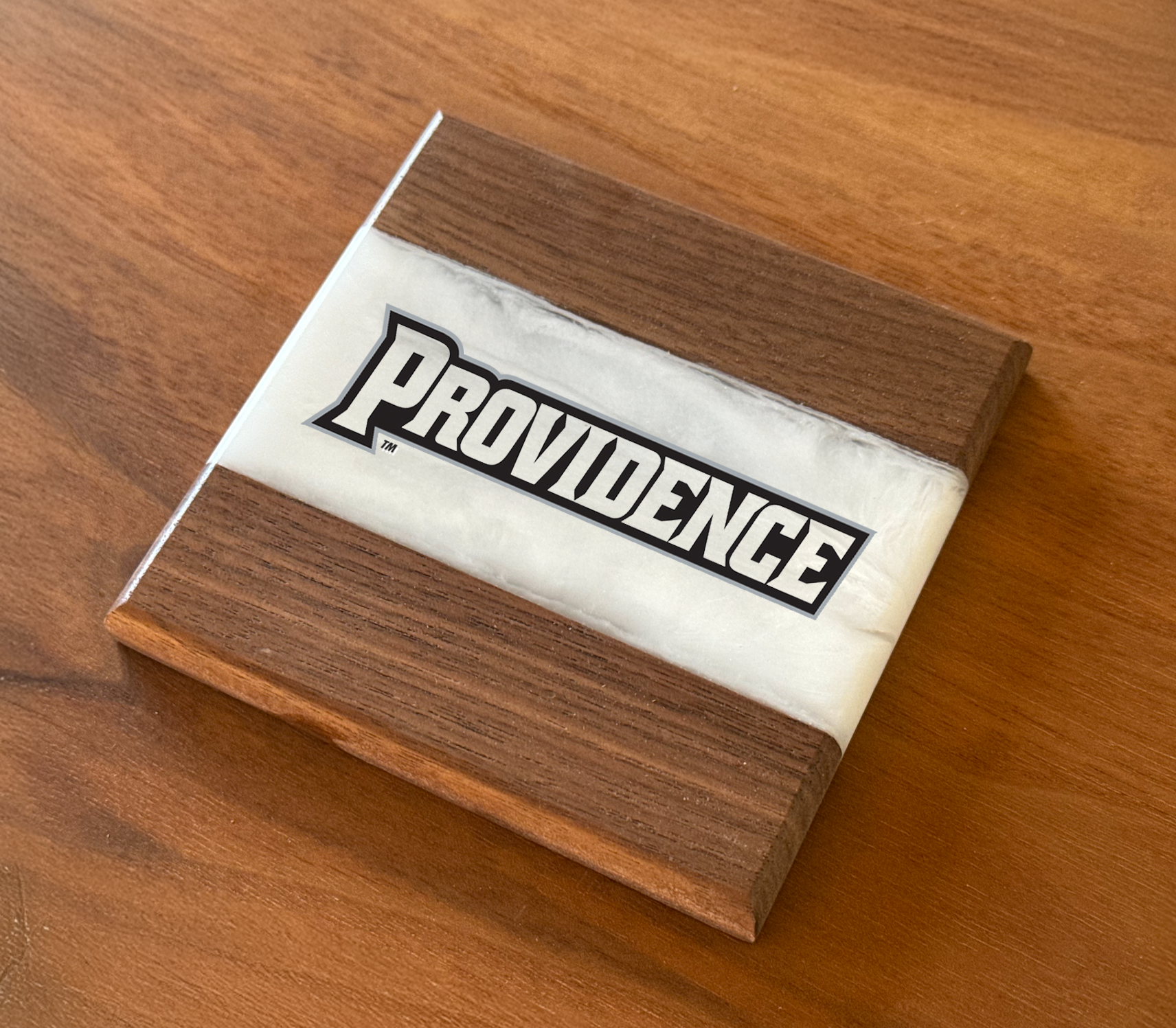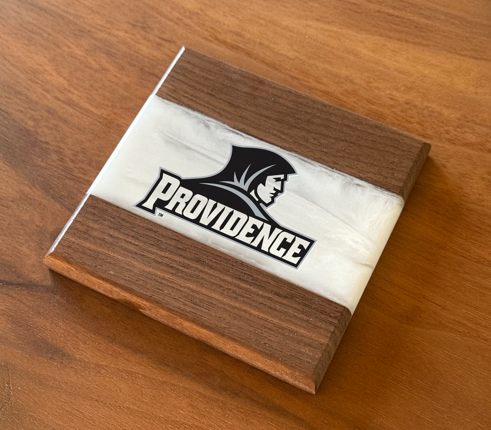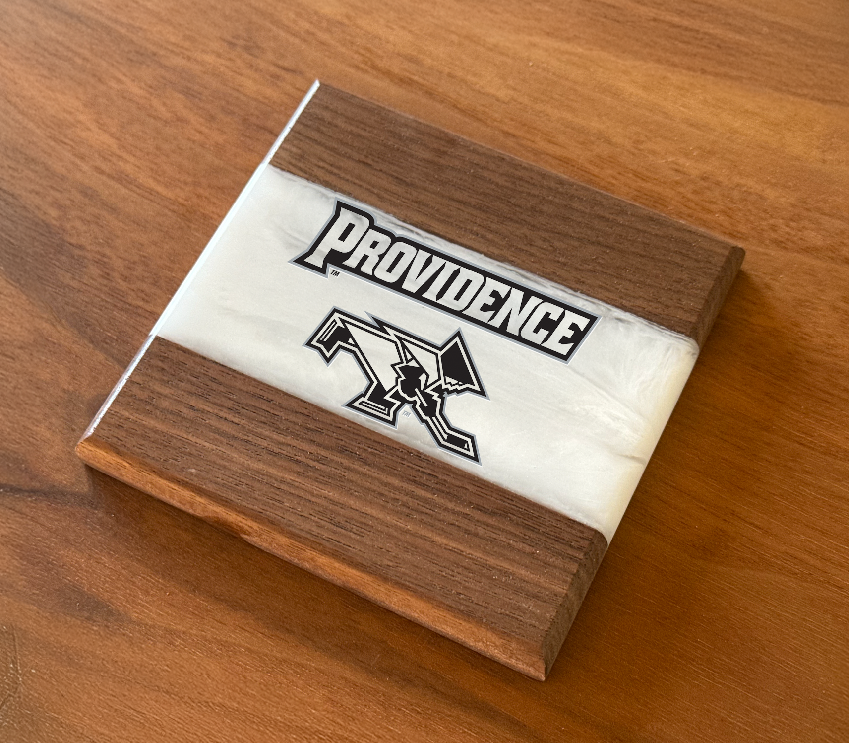 Elevate your game-day setup with this handcrafted Providence College coaster bundle, featuring four 4"x4" coasters and a coaster caddy.