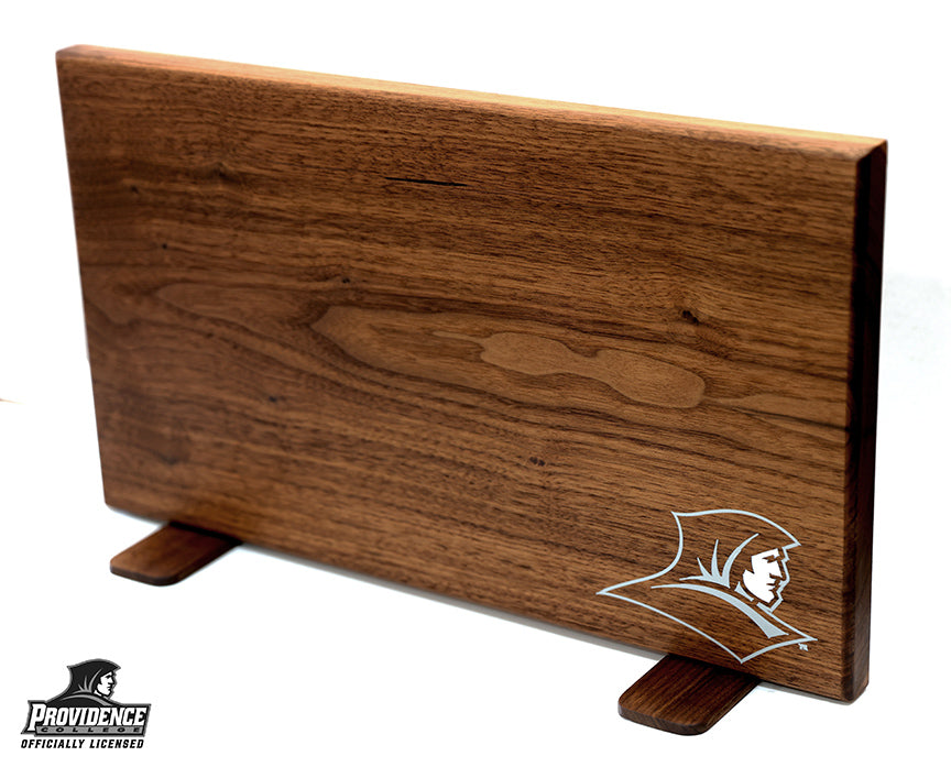 Measuring 11.5" x 19", this block is designed to securely hold your knives in place using a powerful magnetic strip that's hidden in the wood, while the walnut feet allow it to stand proudly on your countertop. The Providence College logo is expertly engraved in the bottom corner and filled with epoxy, ensuring long-lasting, vibrant detail.