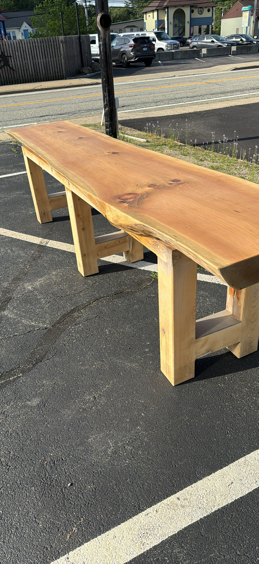 Crafted from Eastern White Pine, this live edge table blends rustic elegance with natural charm. Handbuilt to your exact size and specs, each table highlights the unique grain and live edge of the wood 🌲. Personalize it with your golf course’s logo 🏌️♂️ or custom engraving for a truly signature piece. Whether it's for the clubhouse, pro shop, or your home bar, this table is made to stand out and spark conversation 🍻.