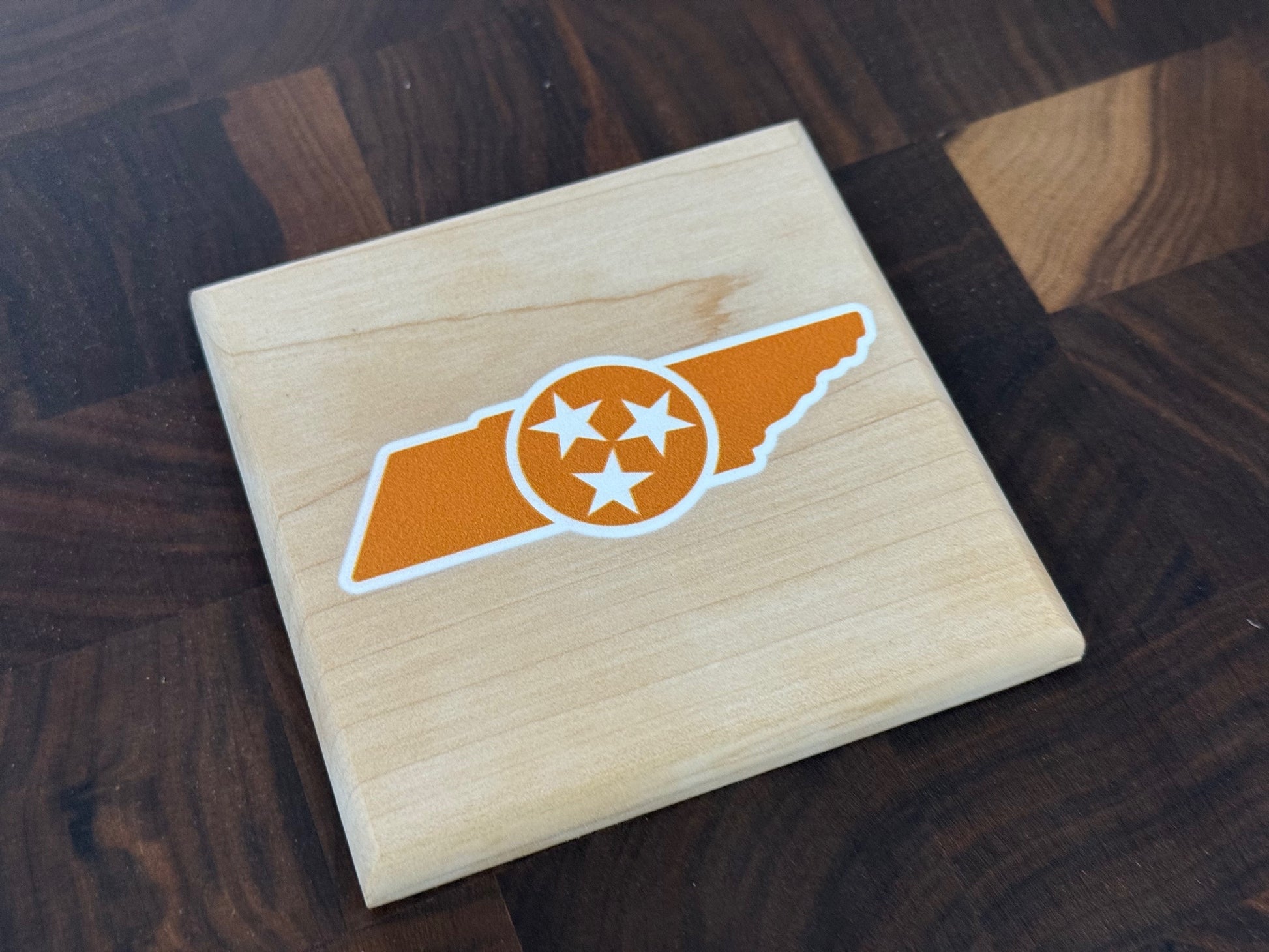 Finished with a protective semi-gloss polyurethane coating, these coasters offer just the right balance of shine and durability while keeping your surfaces safe. Perfect for tailgates, watch parties, or as a gift for any Tennessee fan.