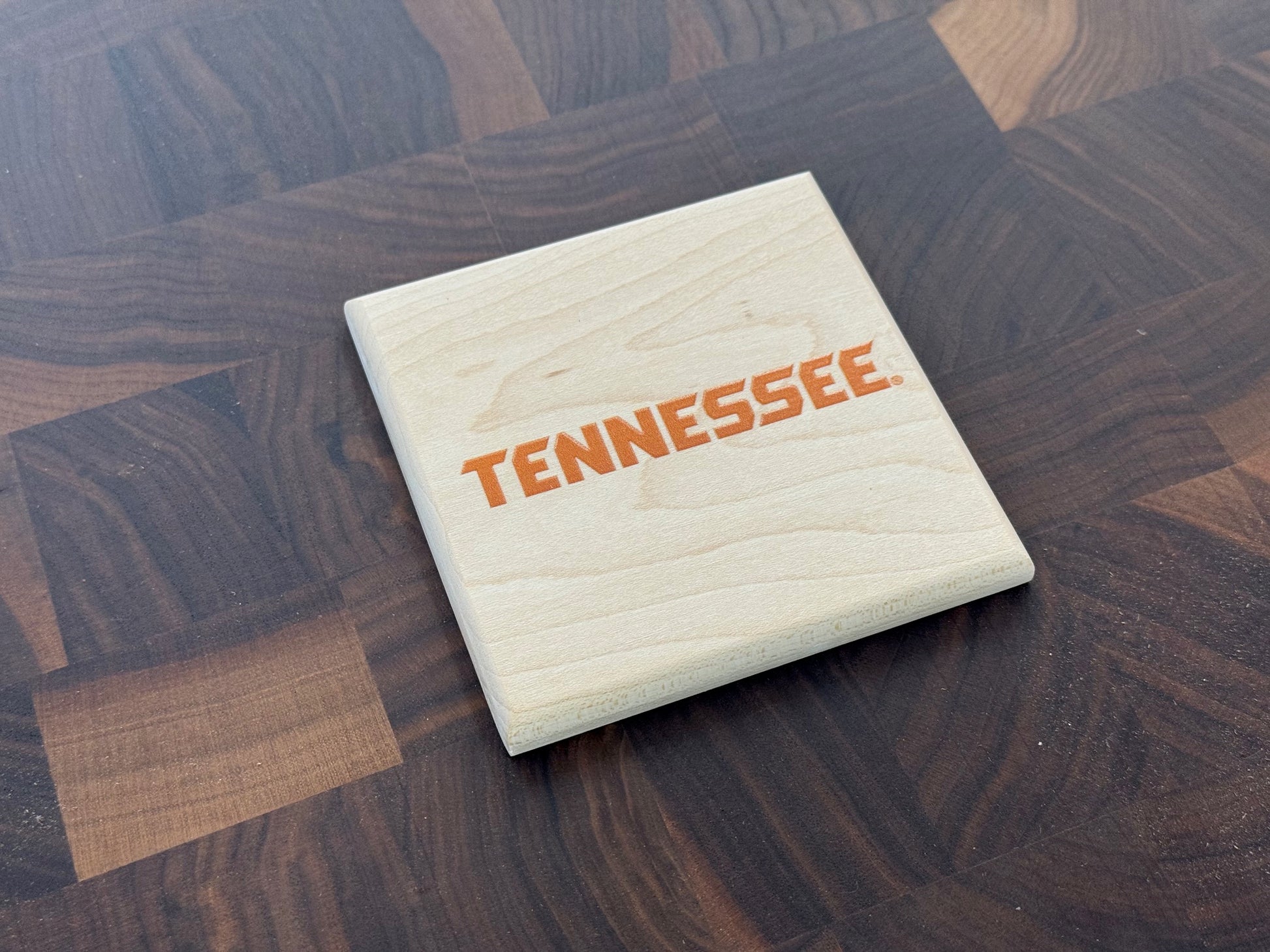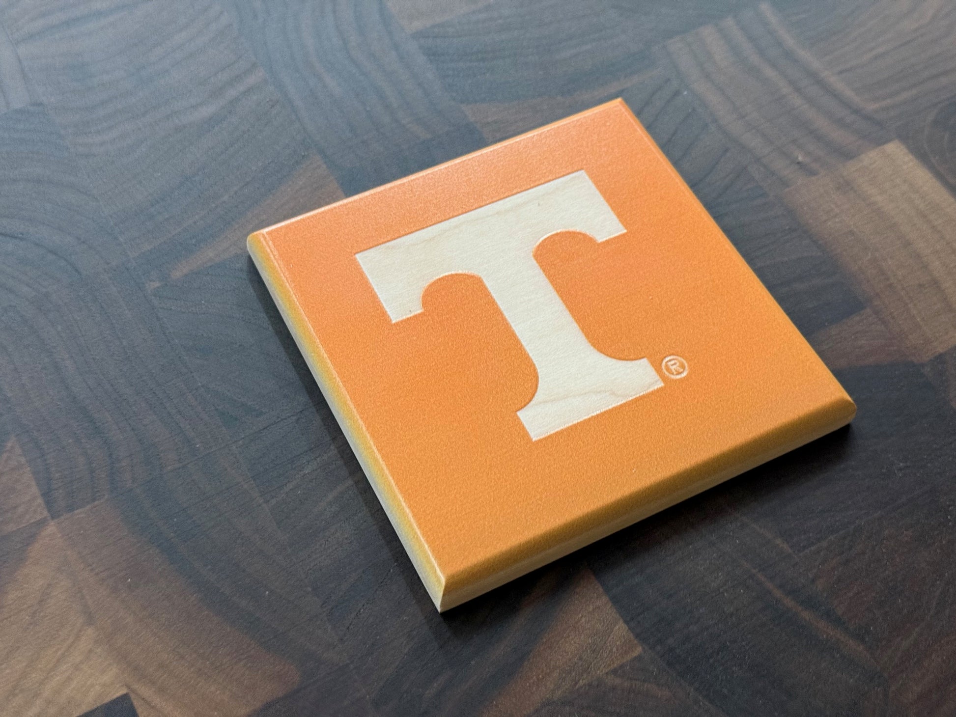 Show your Volunteer pride with these handcrafted wood coasters, available in rich black walnut or classic maple. Each coaster is precision UV-printed with the iconic Tennessee Volunteers Logo, creating a bold, high-quality design that stands out on game day or any day.